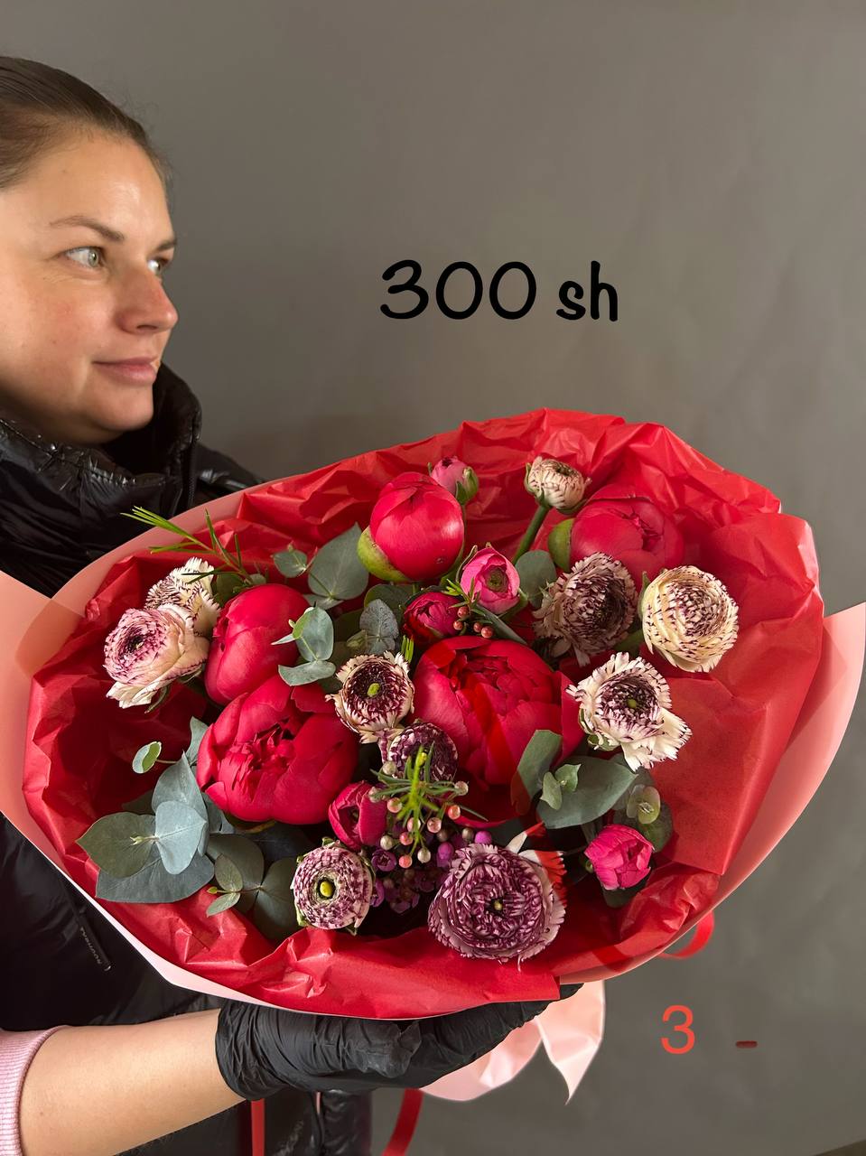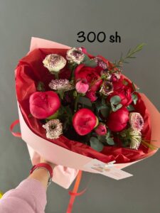 Яркая и выразительная композиция, созданная для тех, кто любит эффектные сочетания и глубокие эмоции. Бархатные красные пионы, насыщенные фиолетовые ранункулюсы, нежные двухцветные цветы и свежая зелень эвкалипта формируют динамичный и роскошный образ. Контрастная красно‑розовая упаковка подчёркивает насыщенность оттенков и делает букет по‑настоящему запоминающимся. Такой подарок идеально подходит для особых моментов — особенно на День всех влюблённых, когда хочется выразить чувства ярко, красиво и с характером.