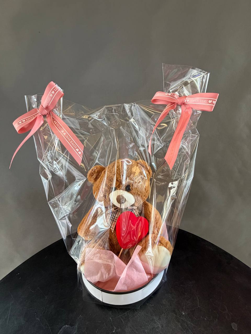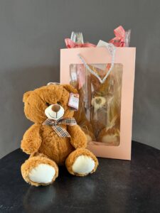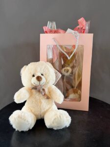 Выберите между нежным белым или уютным коричневым медвежонком, каждый украшен стильной лентой и упакован в элегантный подарочный пакет. Эти милые создания подарят тепло, заботу и улыбку вашему любимому человеку. Подарите эмоции, которые останутся в сердце навсегда!