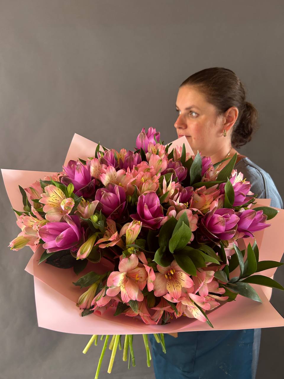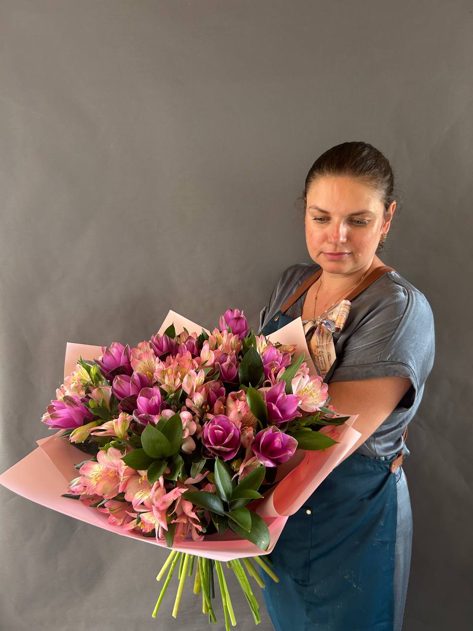 Собран вручную, оформлен в минималистичную упаковку, подчёркивающую природную красоту цветов.
