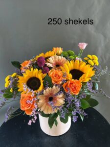 Яркая цветочная корзинка, наполненная солнечным настроением и живыми красками. Подсолнухи, оранжевые розы, герберы, хризантемы, гвоздики и статица создают насыщенную палитру, а зелёные акценты напоминают о свежести абсента. Белая корзина подчёркивает объём и контраст композиции. Идеальный выбор для поздравлений, декора или просто чтобы наполнить пространство светом и радостью.