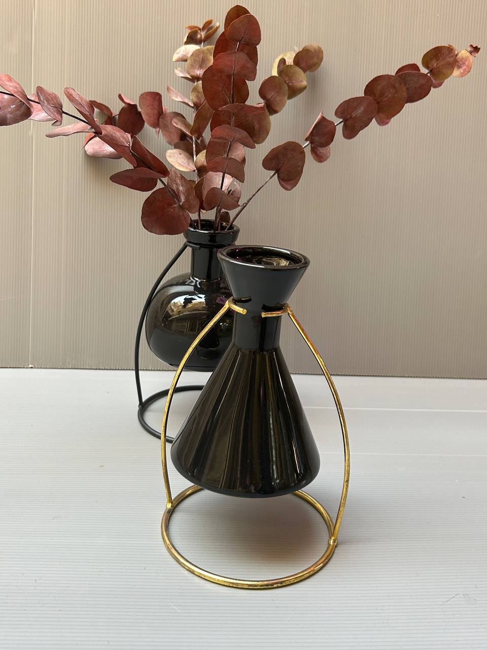 Ваза керамическая на металической подставке, конусной формы. Высота -19 см, ширина — 13 см